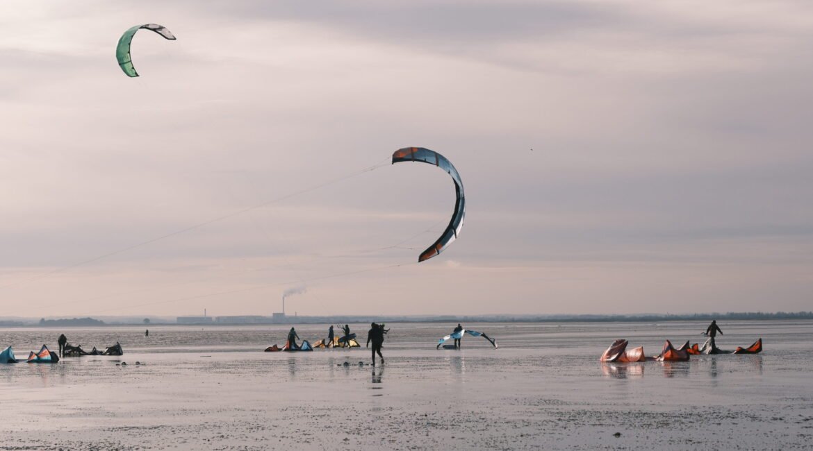 Pegwell Bay sits on the east side of Kent’s coast. The bay is shallow and wide, making it popular with beginners. The choppy water and gusty winds aren’t ideal for advanced tricks, but the shallow stretch which runs out nearly a mile, makes it forgiving for mistakes. Many new kitesurfers choose Pegwell Bay for this reason.